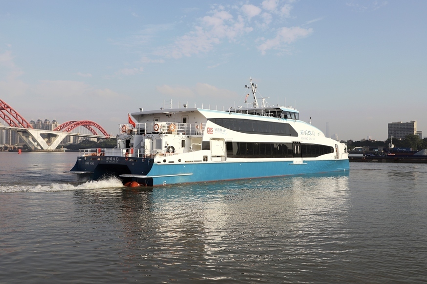 9月28日,中国香港新渡轮离岛项目之“新明珠13号”500客位铝合金高速客渡船试航成功。作为中国船舶集团广州船舶工业有限公司批量承接香港新渡轮离岛项目11艘船的最后一艘,“新明珠13号”的试航成功标志着该项目圆满完成主要建造工作,“新明珠”系列船将为建设粤港澳大湾区绿色公共交通、促进高端客渡船创新发展发挥积极的作用。“新明珠13号”由中国船舶集团旗下英辉南方造船(广州番禺)有限公司建造,预计今年底正式交付。