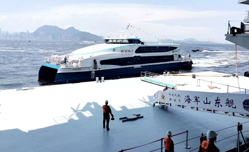 “新明珠”系列高速客船还成为山东舰访港活动中一道独特的风景线。7月3日-7日,中国人民解放军海军山东舰航母编队访问香港,这座“东方之珠”再次掀起“航母热”。此次山东舰航母编队访港,引起众多香港市民的关注,吸引了超3万名市民参观,日均超6000人次。